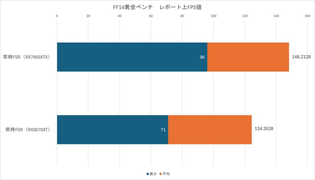 FSR4を起動すると落ちますが、それでもXTXより高い値となっています。