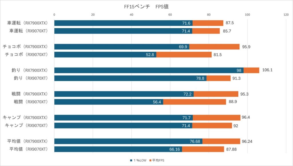 FPSは平均、1%LOWともになんと13%も増加しました。