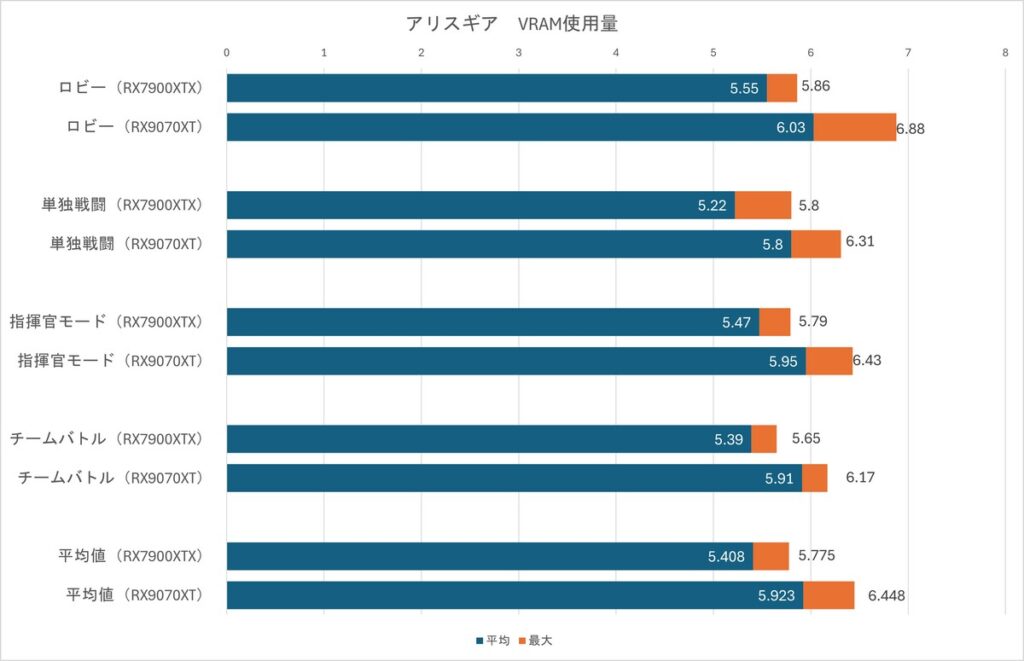 バトルハブではちょっと上がりましたが、対戦でのVRAMがかなり減少しており、それが平均値や最大値を下げた結果になりました。