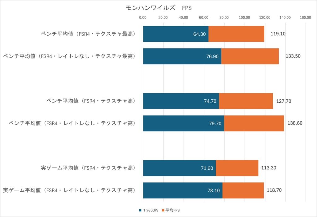 FSR4やフレームジェネレーションを入れてもさほど差異は生じていません。