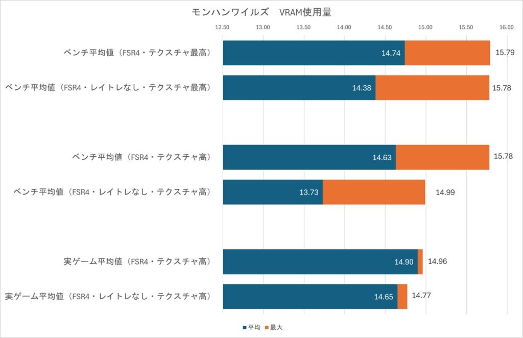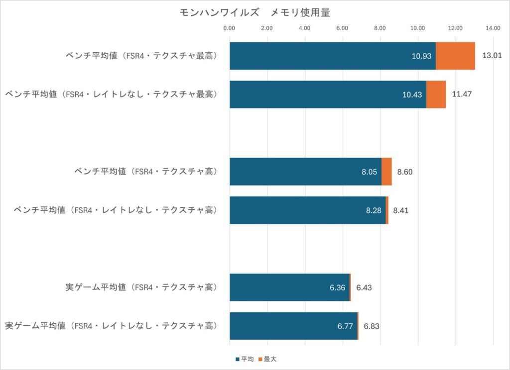 最高の場合平均では10GB台ですが、レイトレいれると最大13GB、レイトレなしだと最高11.5GB近くになるなど重すぎます。