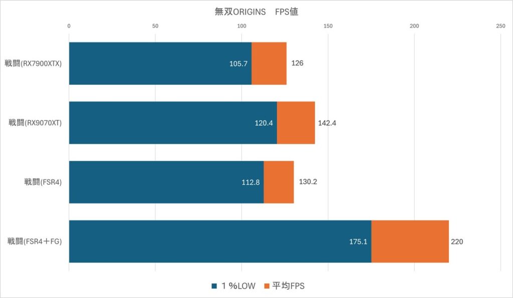 今回は無双ORIGINSのフレームジェネレーションも加味して計算してみました。