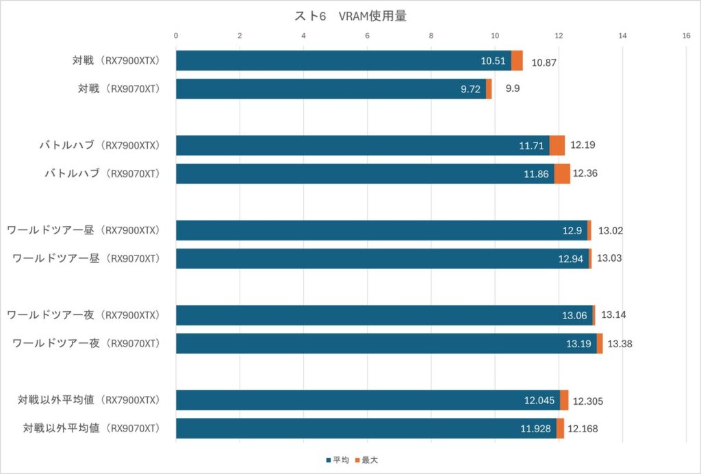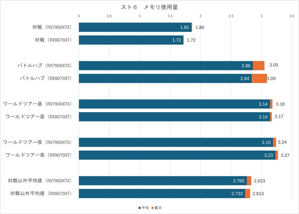 バトルハブではちょっと上がりましたが、対戦でのVRAMがかなり減少しており、それが平均値や最大値を下げた結果になりました。