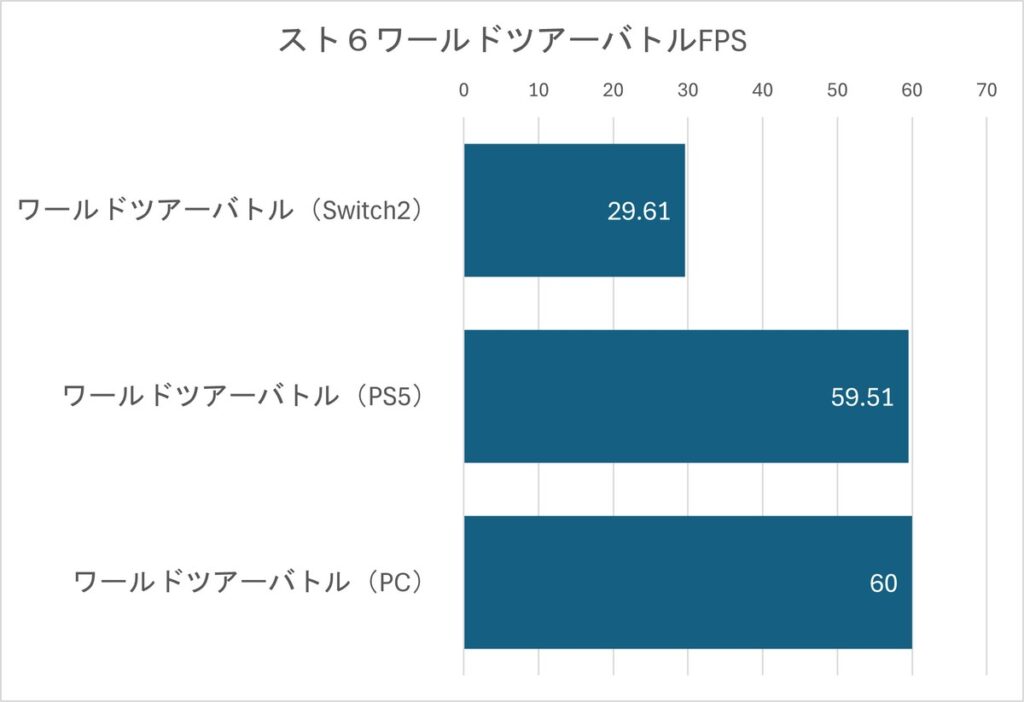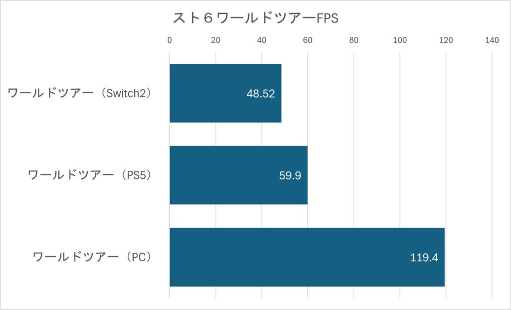 PC、PS5は約60FPSになっているものの、Switch2は30FPSにも到達していないことが分かります。