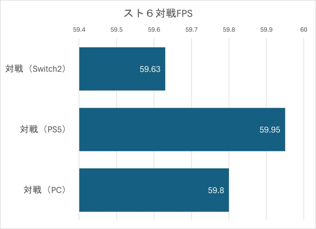 対戦に関しては全ハードで上限である約60FPS出せていることが分かります。