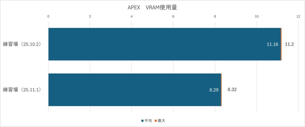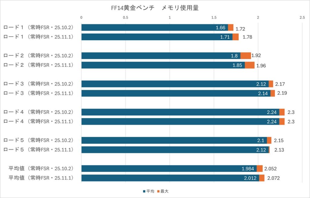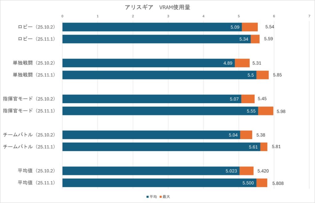 何故かVRAMが13%も上がっており、少し極端な上がり方をしたという印象です。