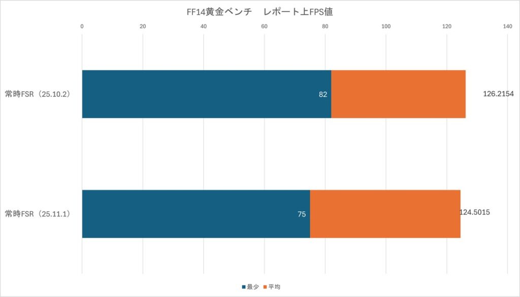 レポート上でのFPSは最大値は1.3%弱の低下となりましたが、最小値が8.5%も低下していました。