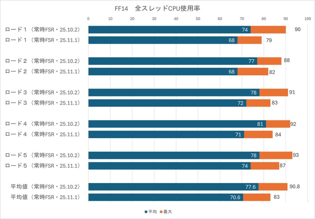 結果としてゆとりが生まれ、FPSは平均が3%の上昇となりました。