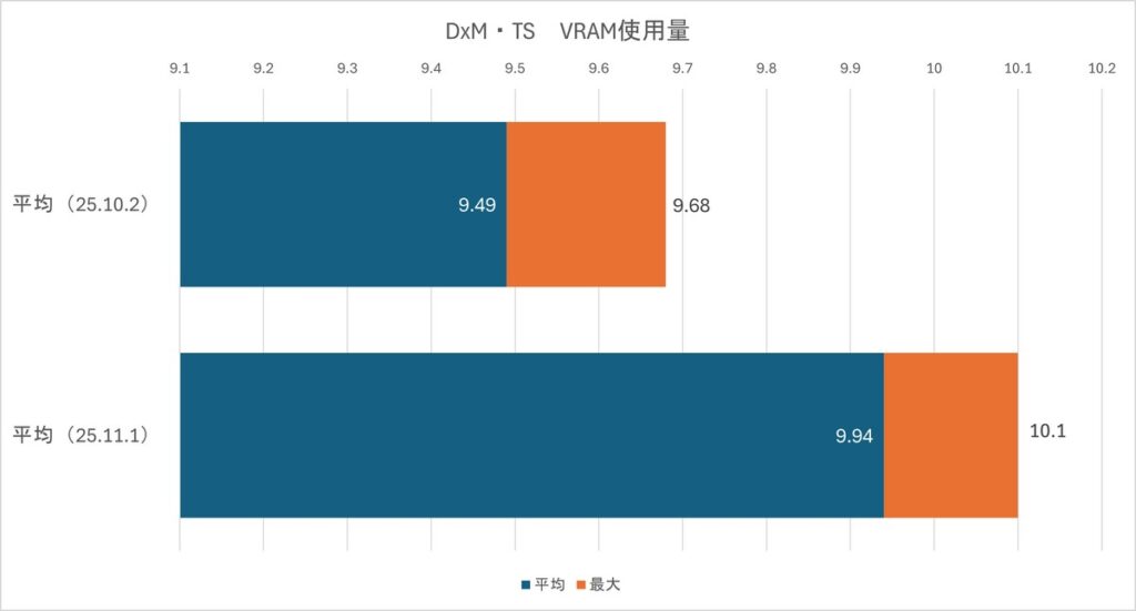 VRAM使用量も9%近く落ちており、パフォーマンス面での改善が見受けられます。
