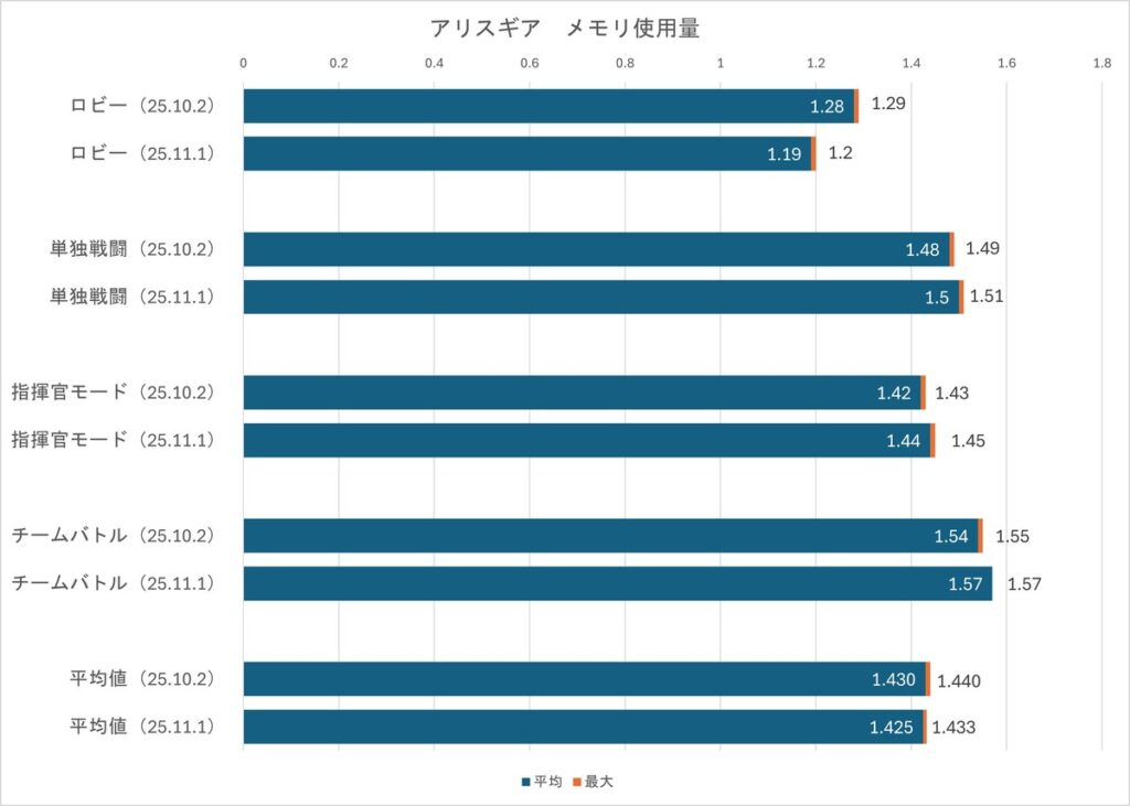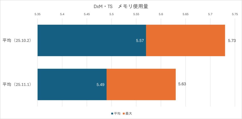 逆にメモリ使用量は1.5%ほどの低下となりました。