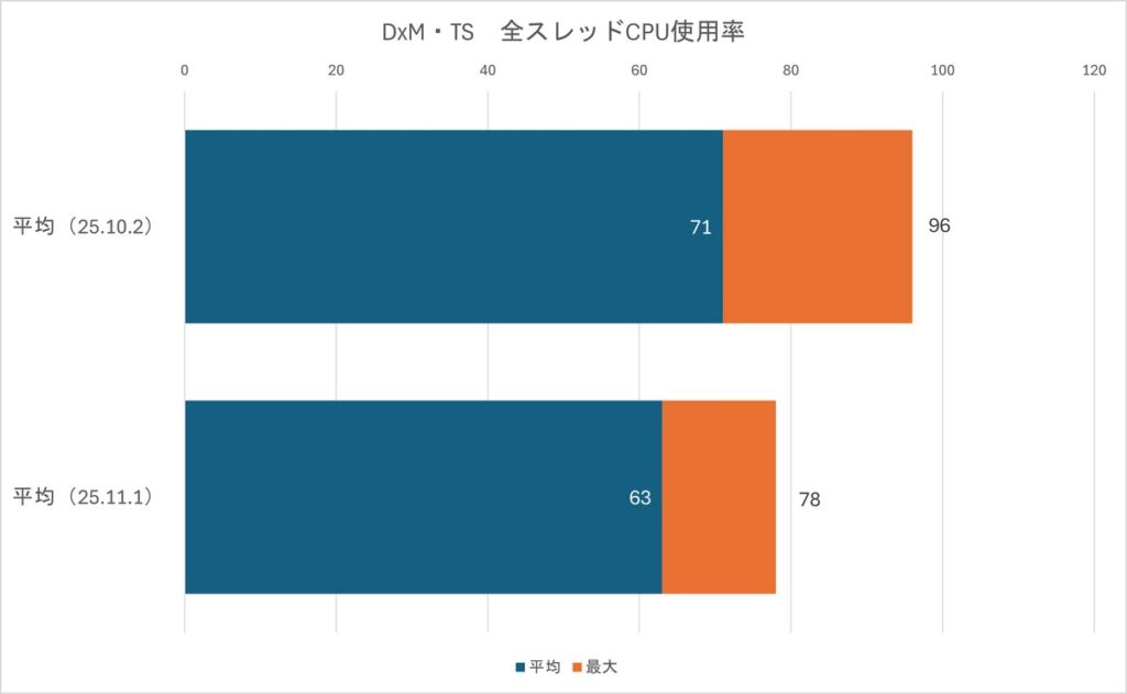 前々回より更に上昇しており、ひょっとしたら一律でCPU使用率を上げた可能性もあります。