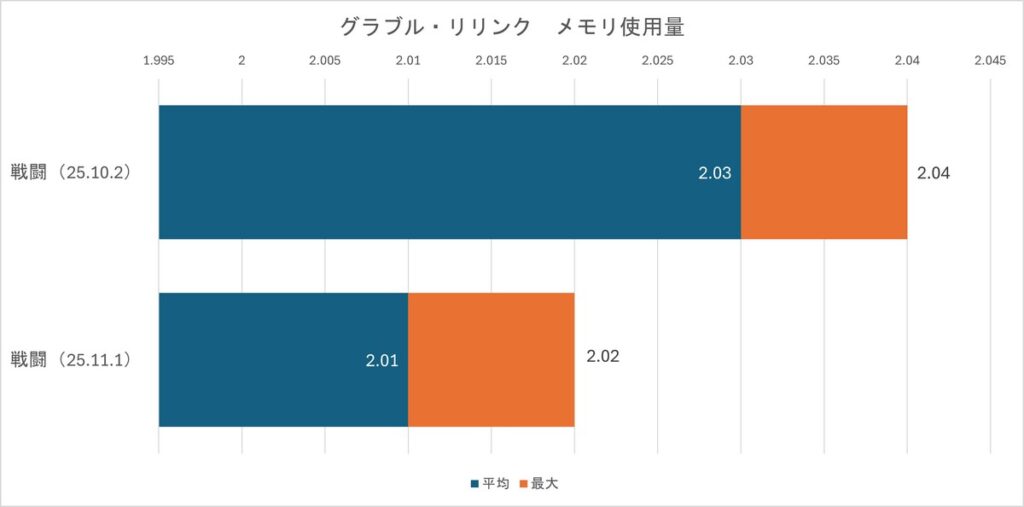 特にメモリの減り方が少し尋常ではなく、計測ミスの可能性もあるかなと思わざるを得ない感じです。