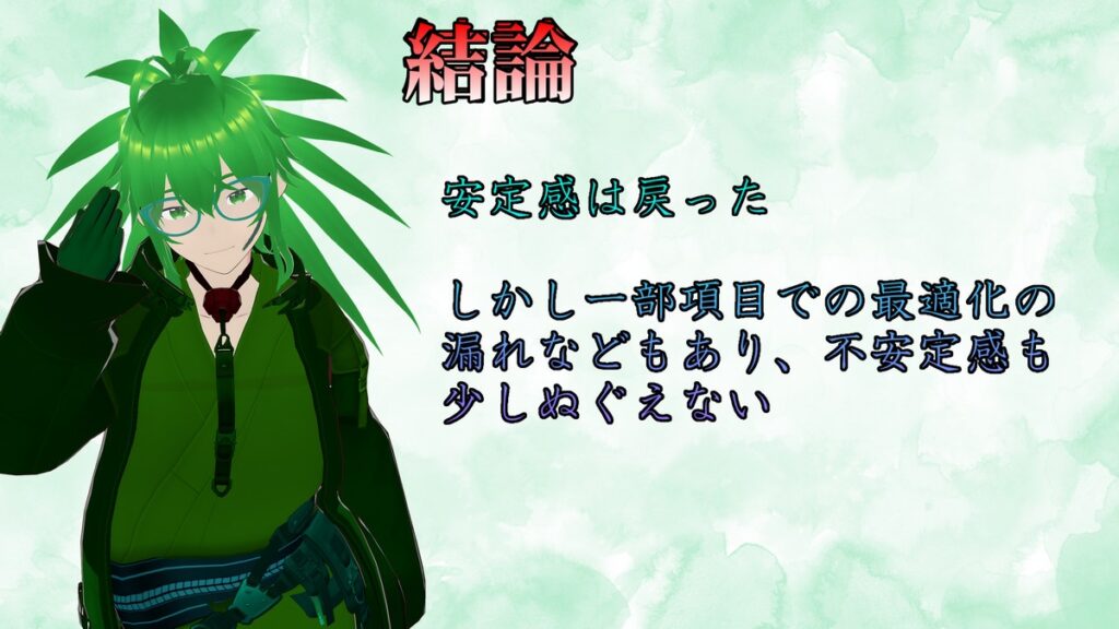まず今回のバージョンの先出しの結論としてはこんな感じです。