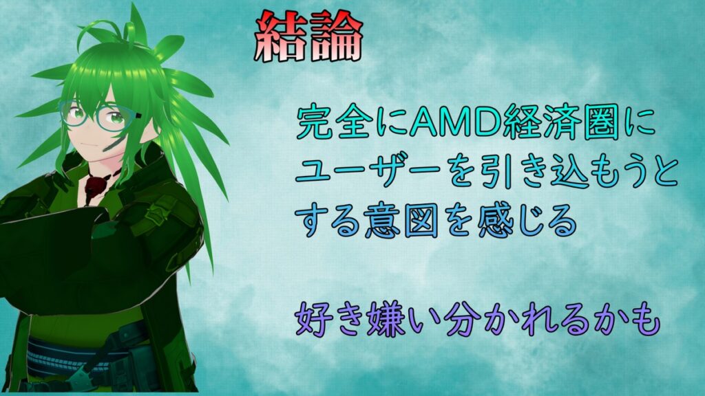 実際、今回のAMDの解説の中にも、生成AIのためにGPUを用いるという記載があることから、明らかにドライバがGPU直結でいくことにしているか、というのがよくわかります。