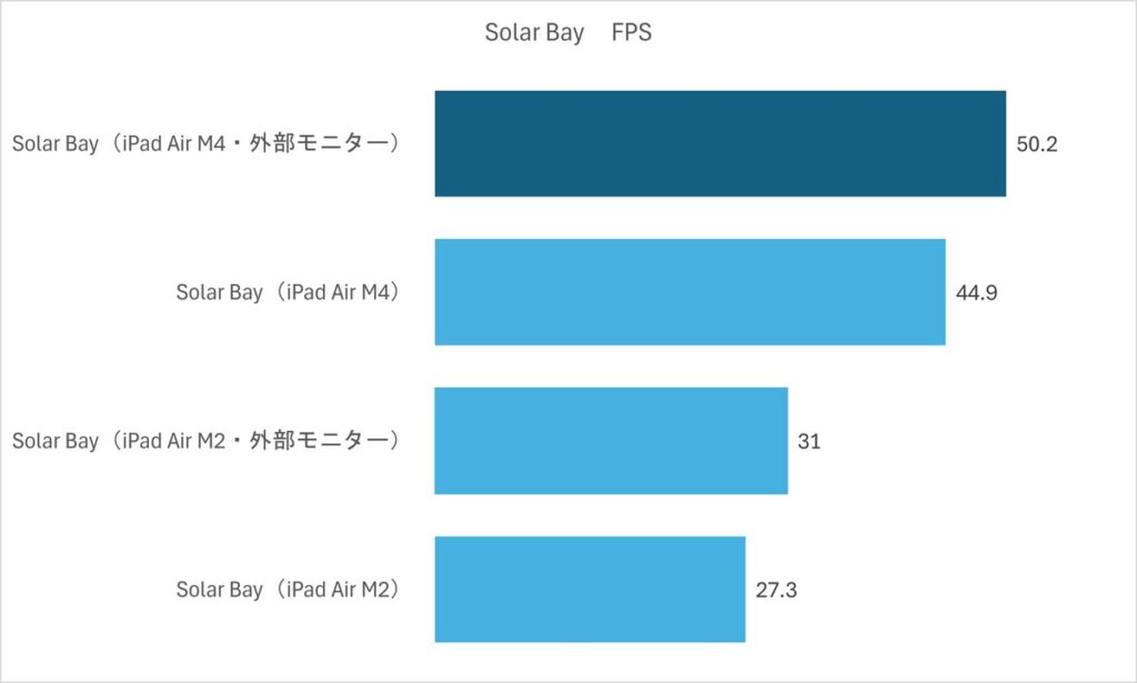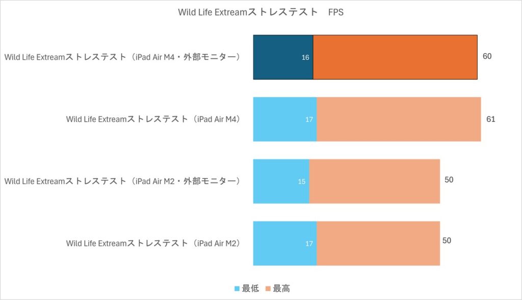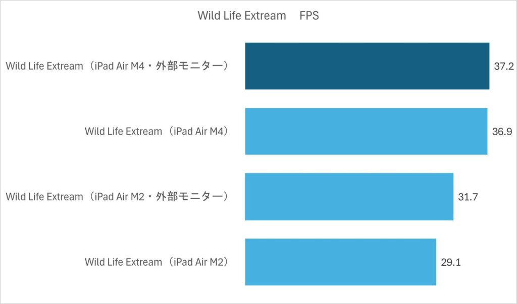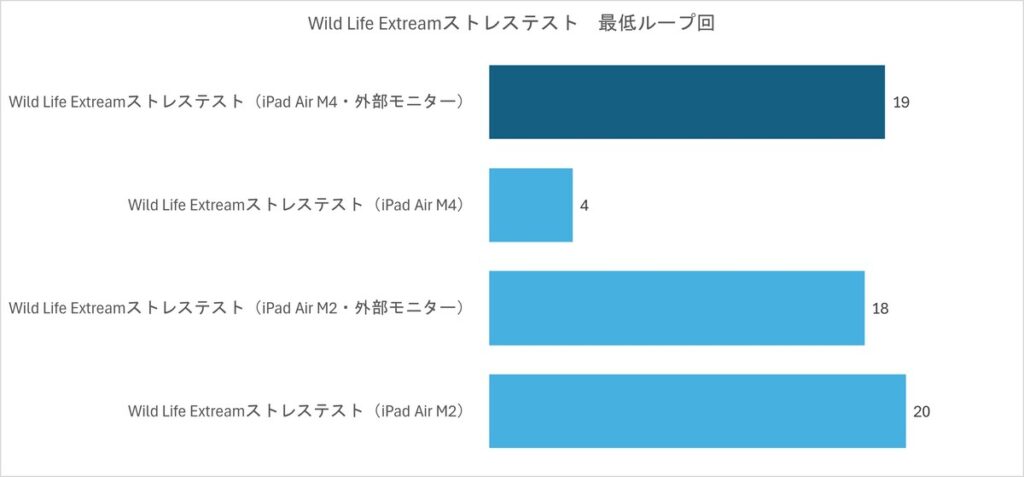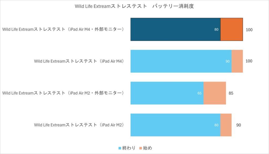 なんと外部モニターに接続したほうがM4は持ちこたえます。