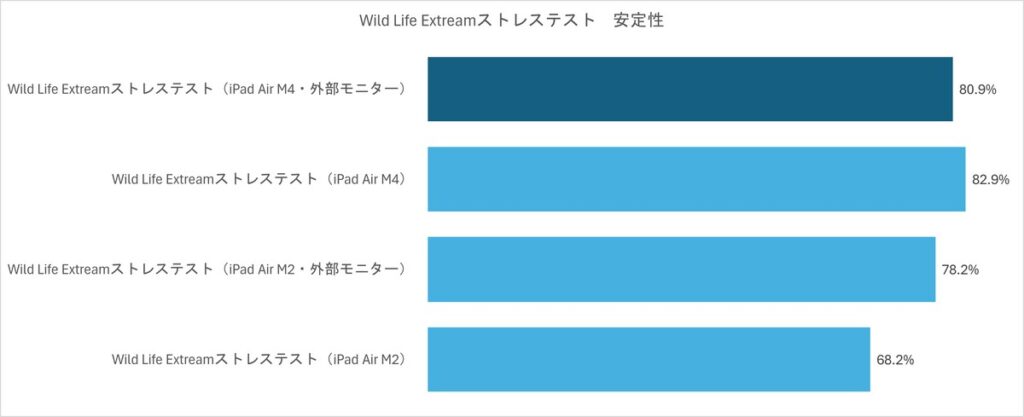 このことから安定性を求めるなら単独運用よりも外部モニター接続のほうがいいのかもしれません。