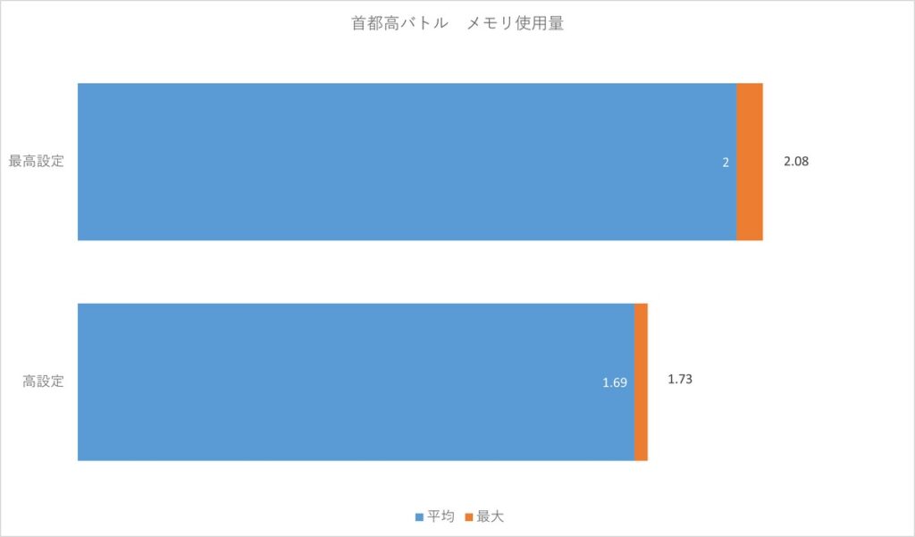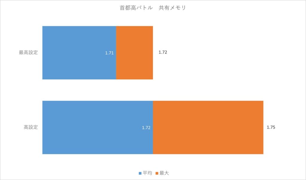 メモリ使用量は最大、平均共に16.5~17%の低下です。