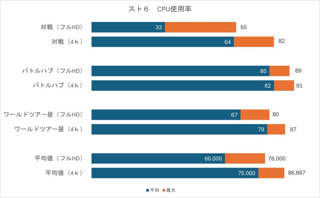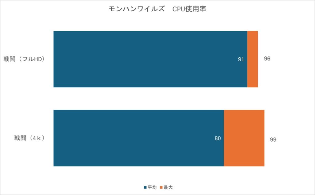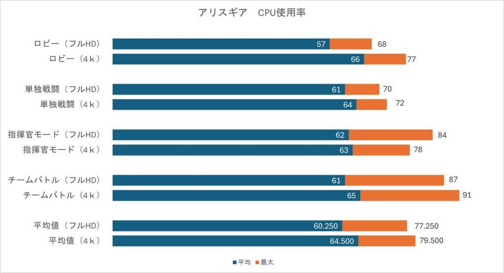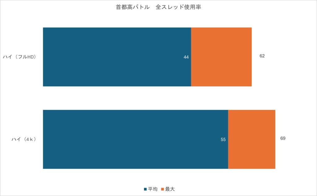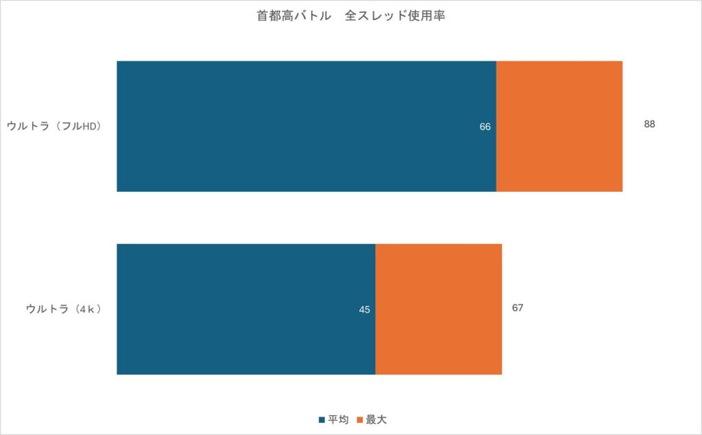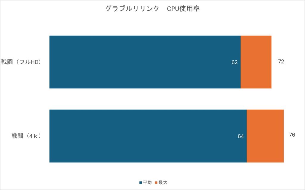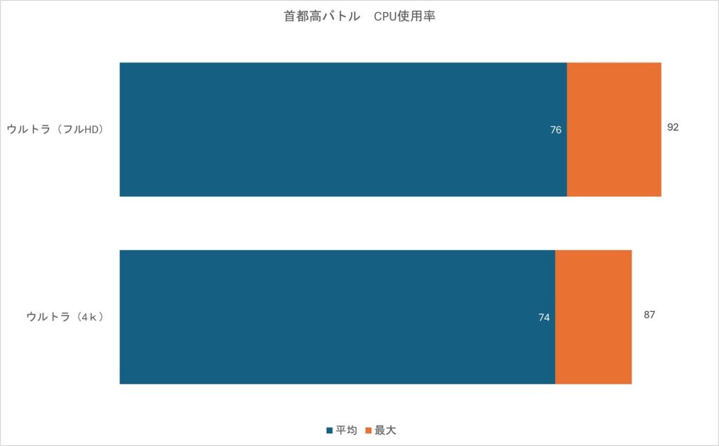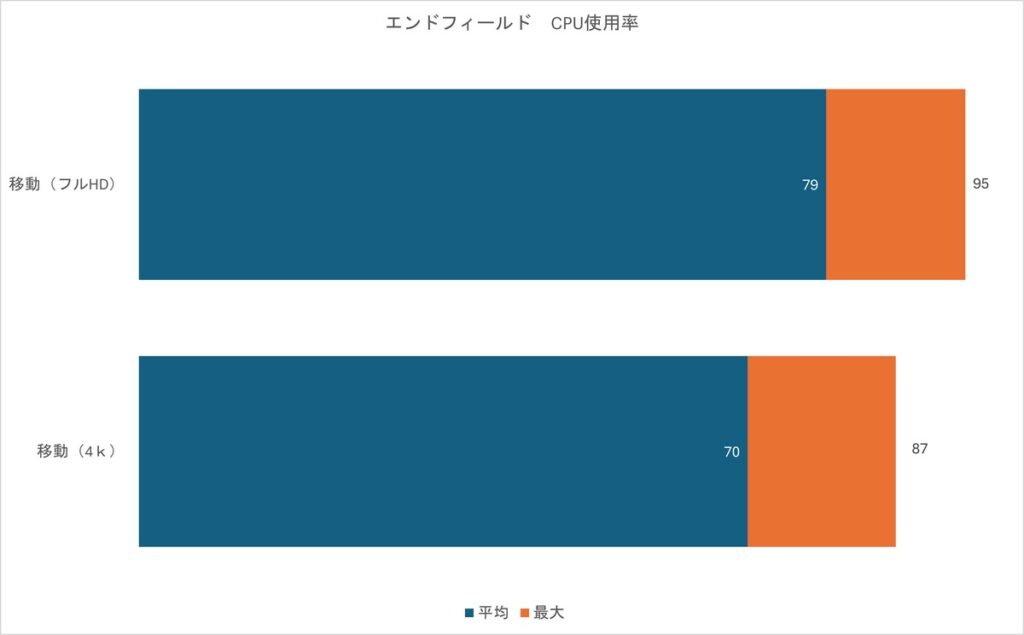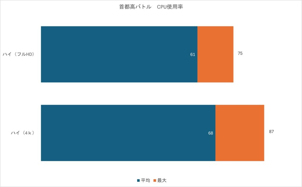 不思議なことにCPU使用率はフルHDの方が低いという珍しい結果となりました。