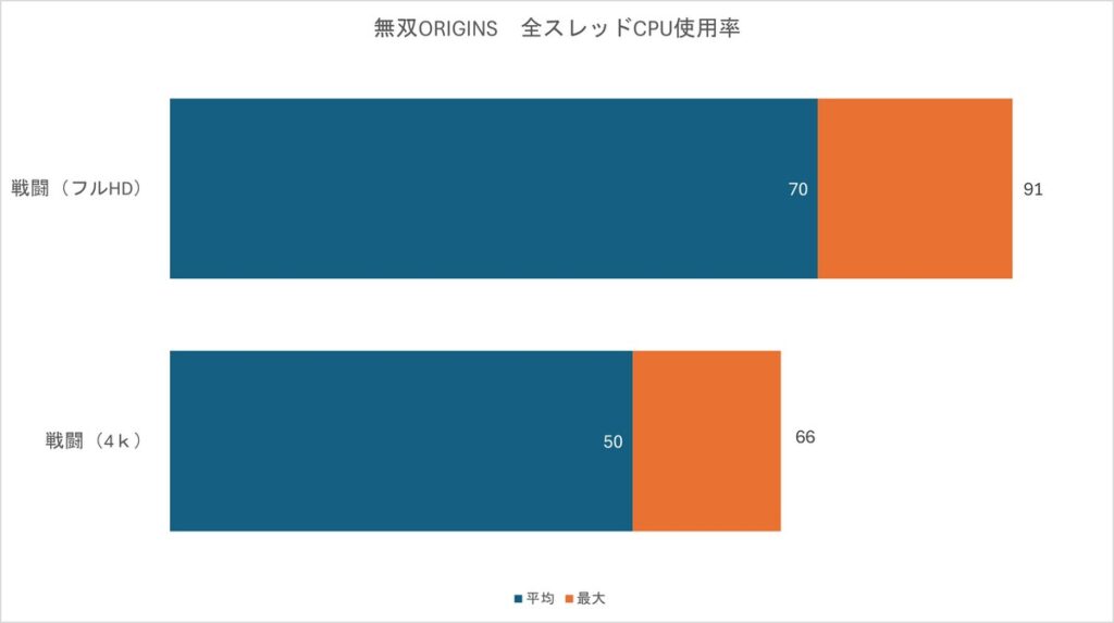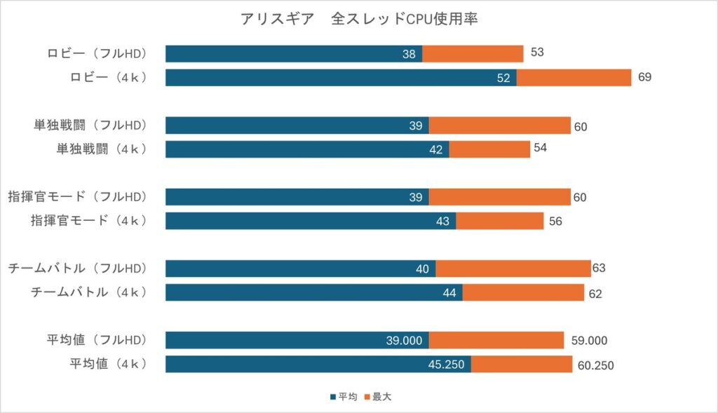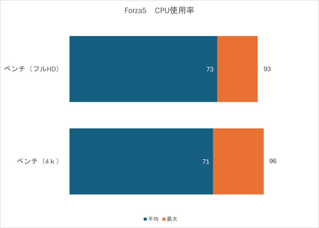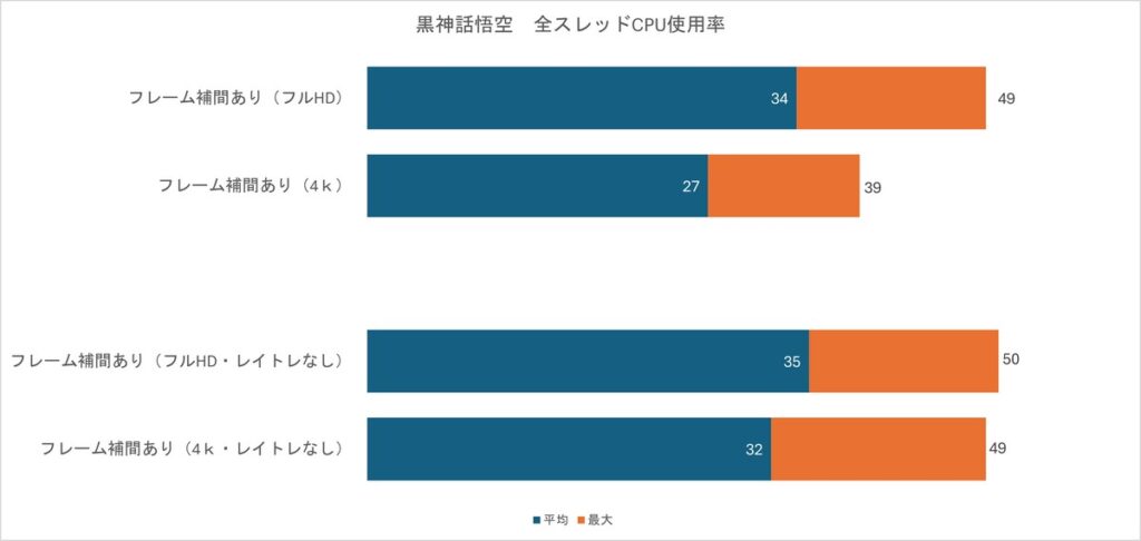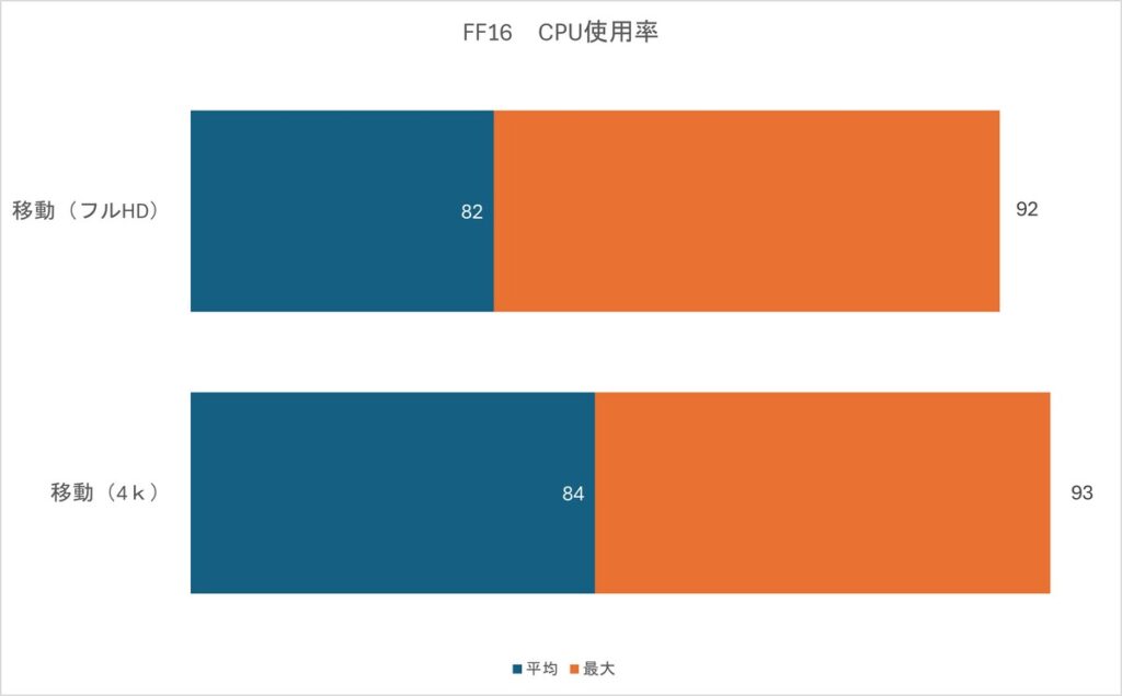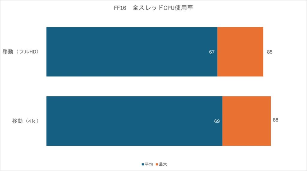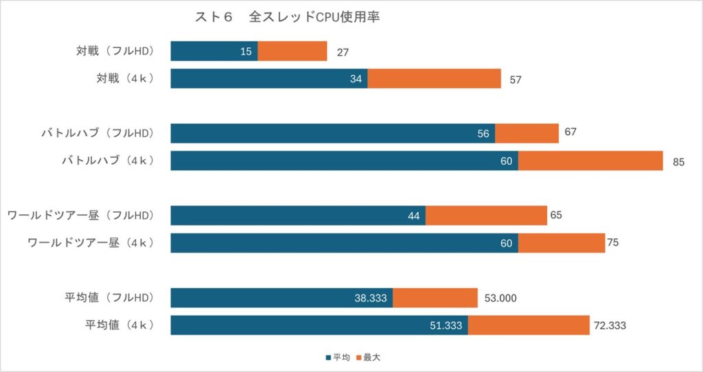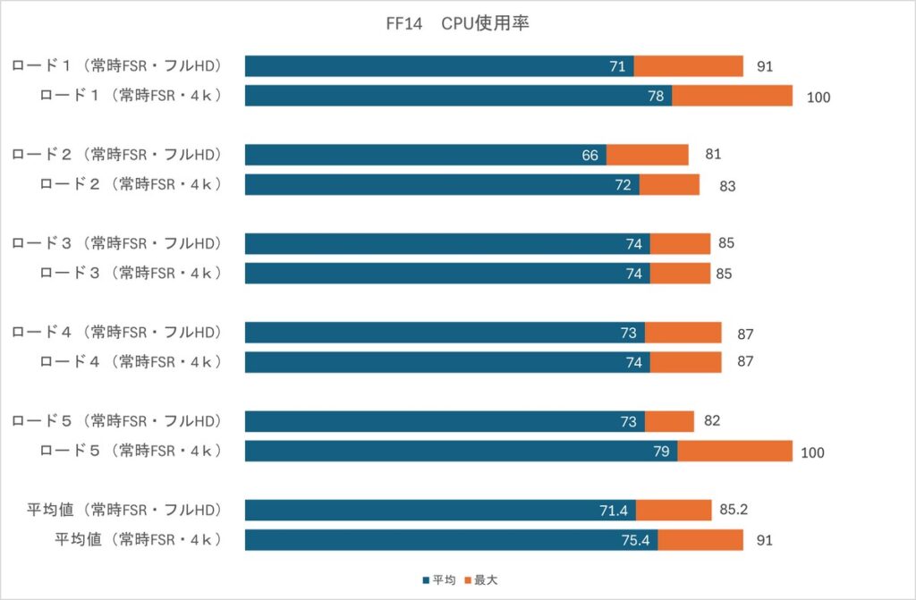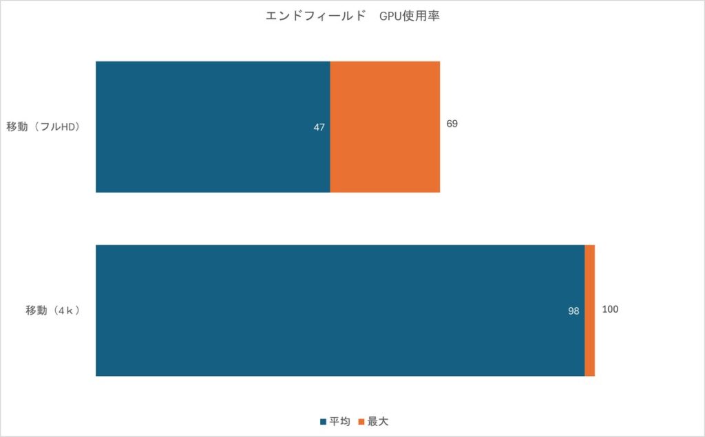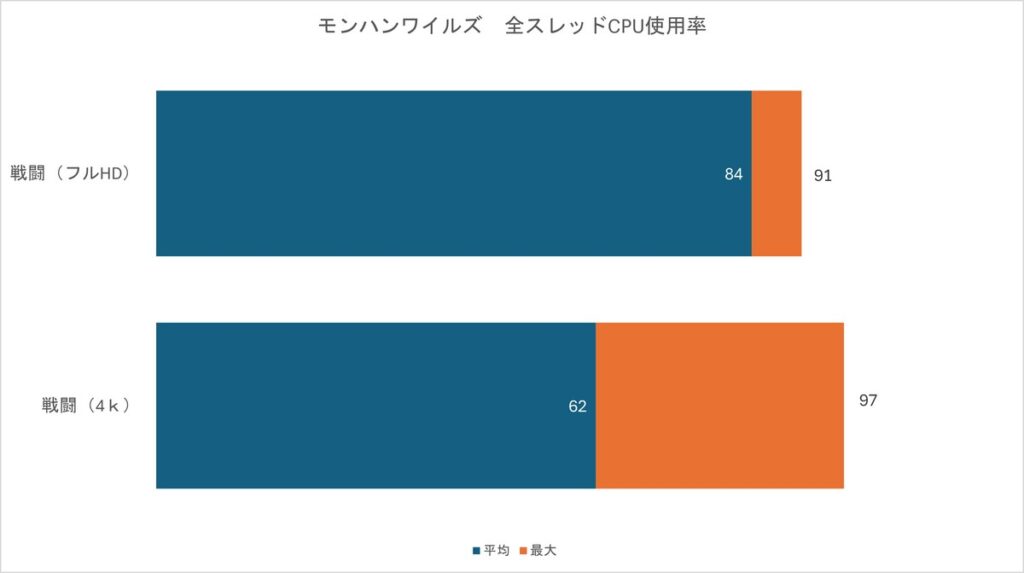 不思議なことにCPU使用率はフルHDの方が低いという珍しい結果となりました。