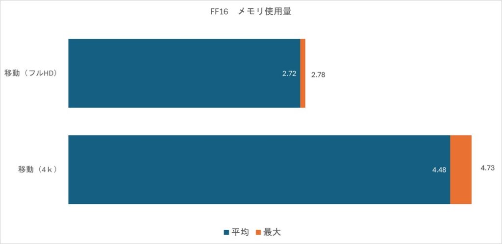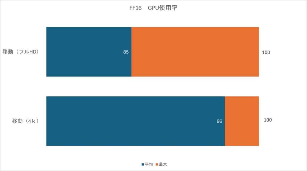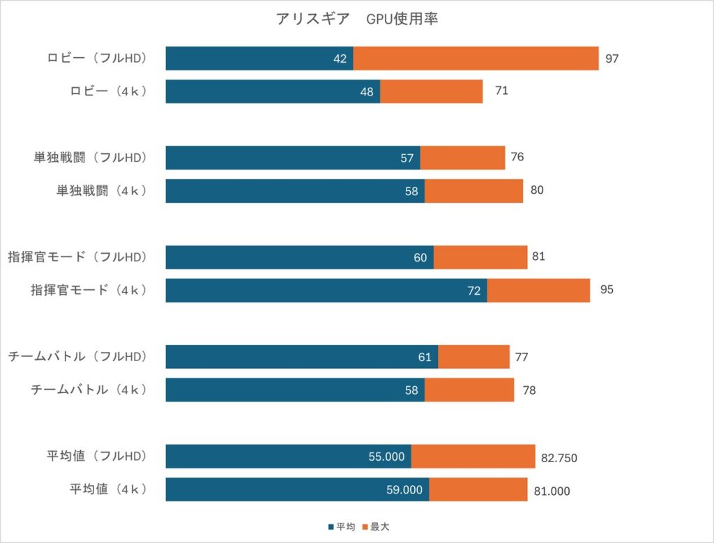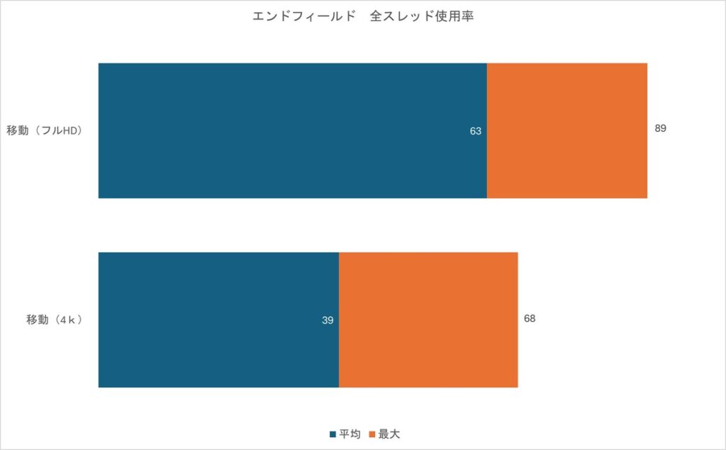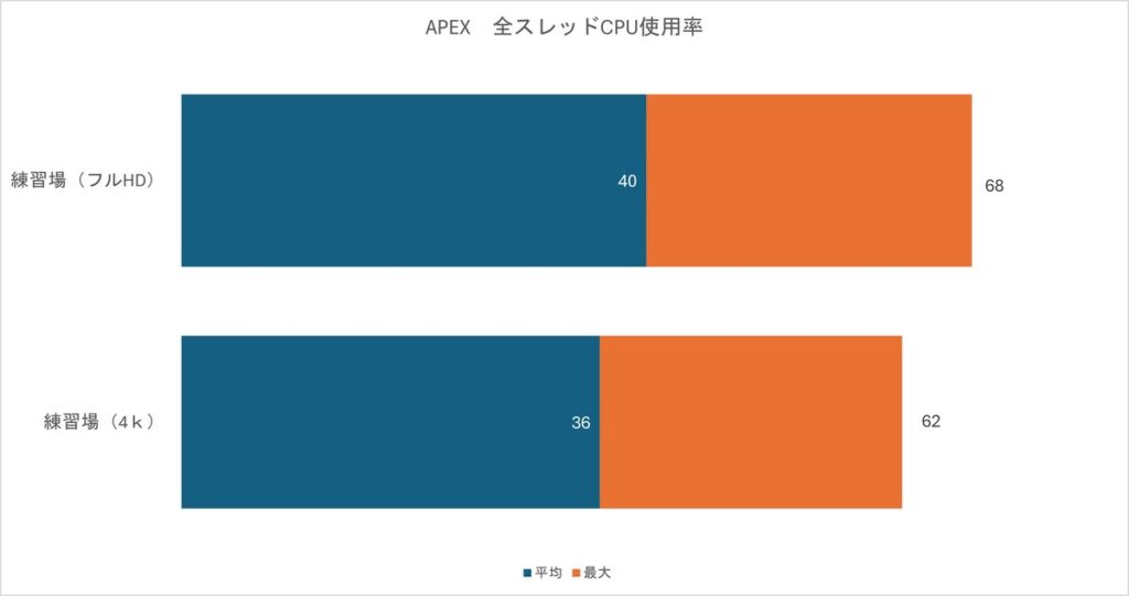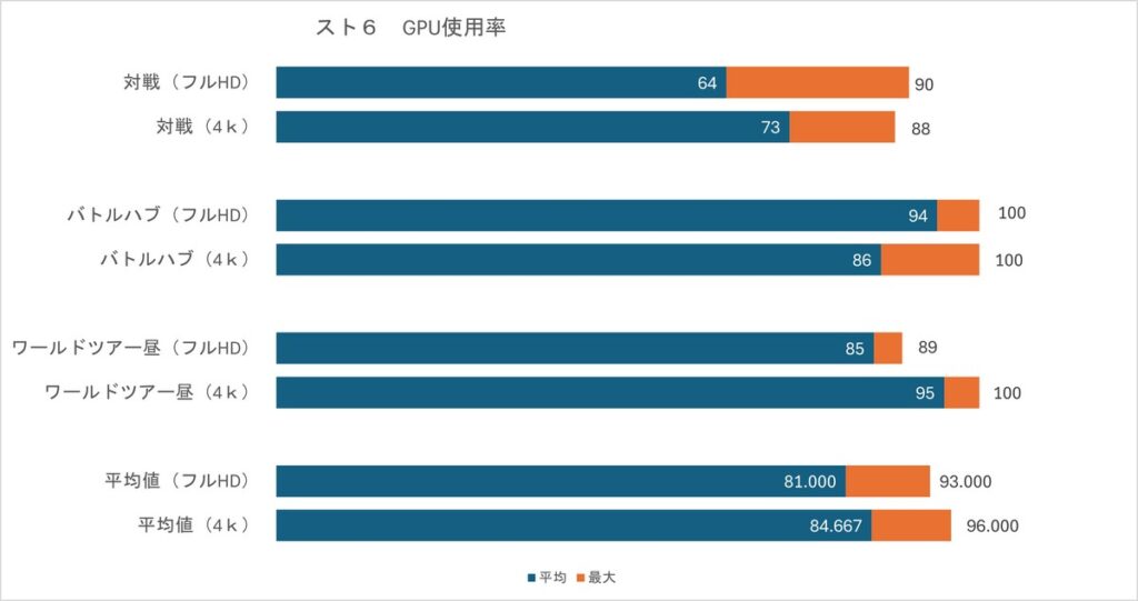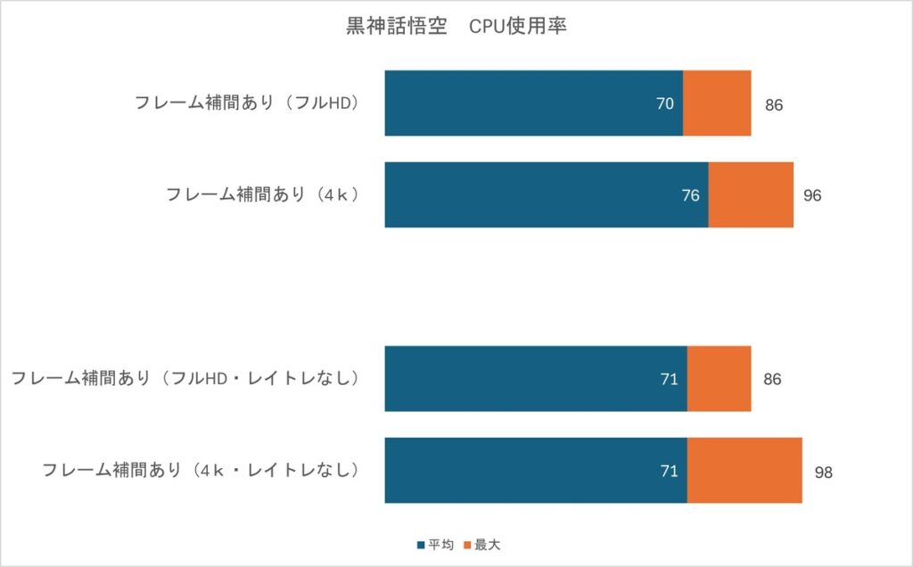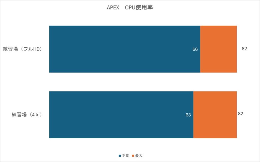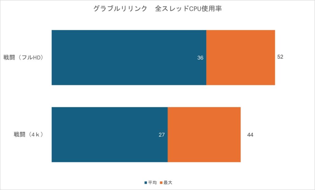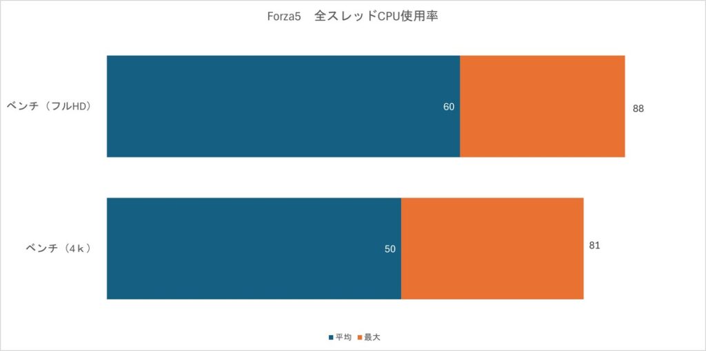 不思議なことにCPU使用率はフルHDの方が低いという珍しい結果となりました。