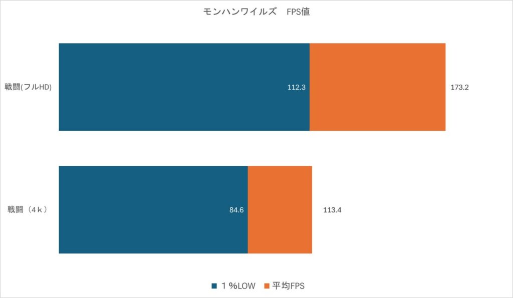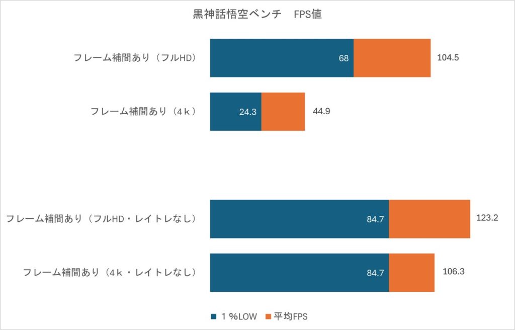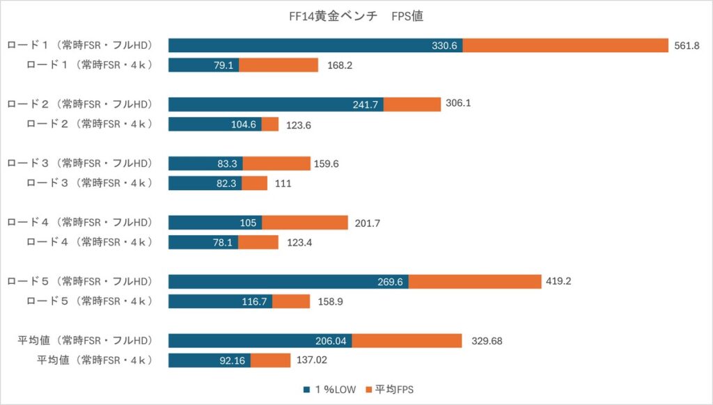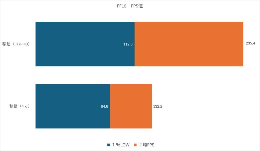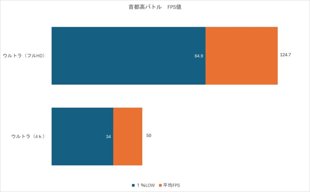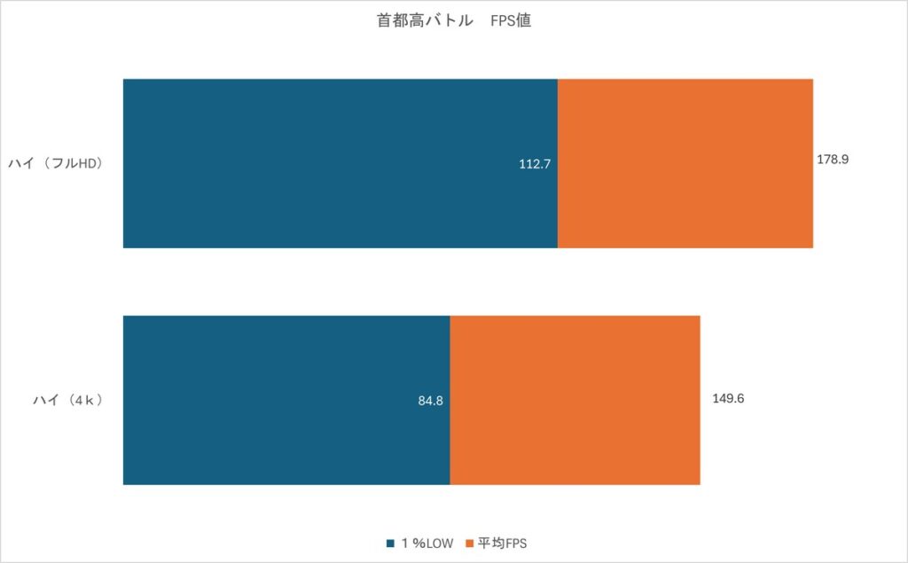 フルHDにすることで平均52%、1%LOW50%の向上となります。
