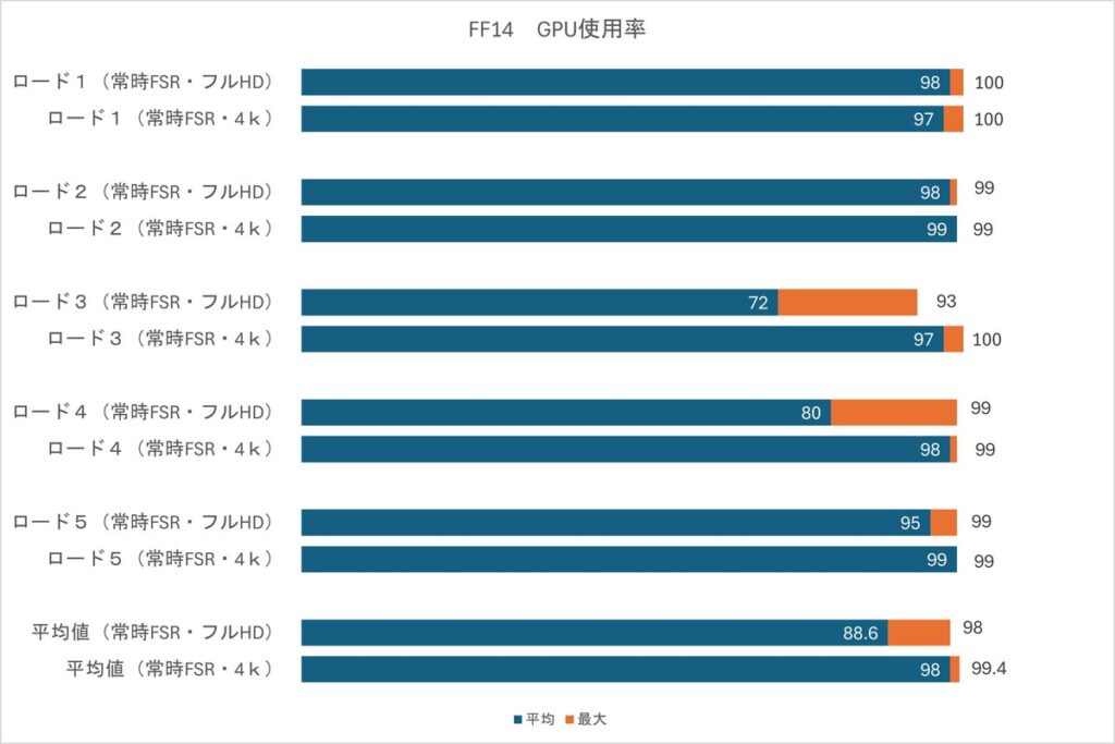 GPU使用率もほぼ変化がありません。つまりFF14はサイパンといっしょのGPUボトルネック型ということです。