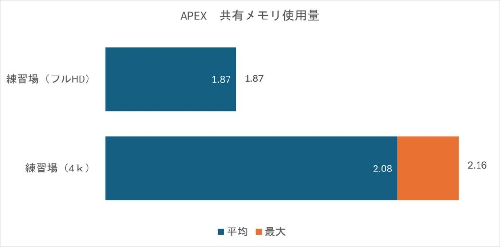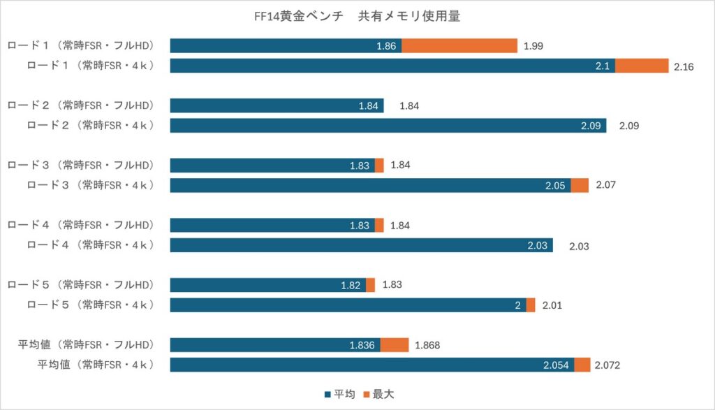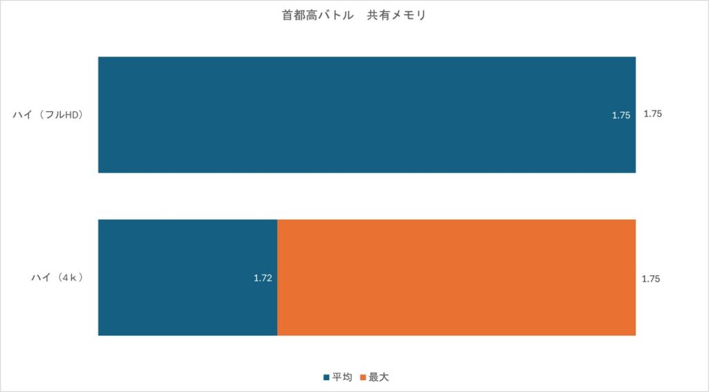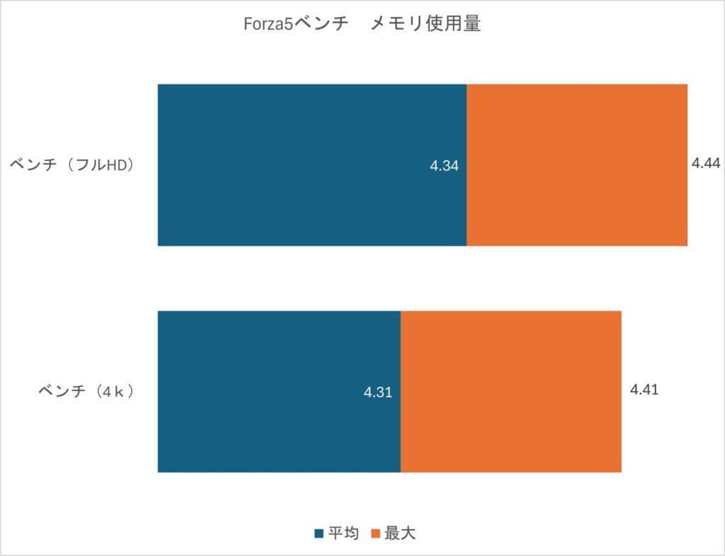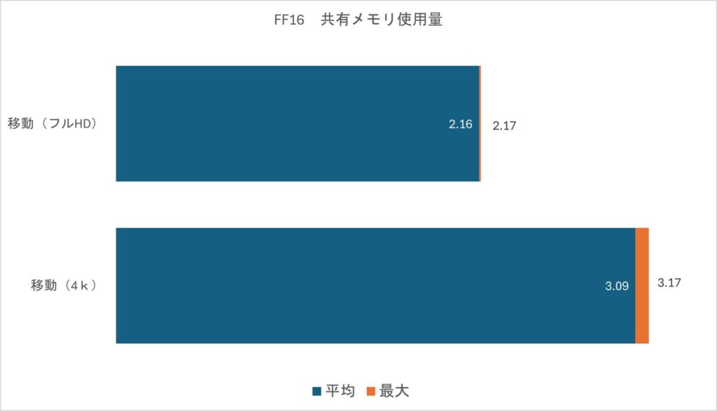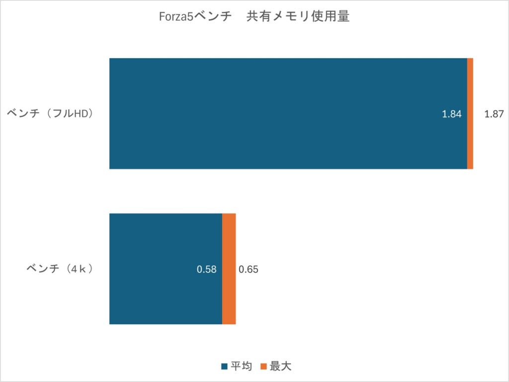 共有メモリはForzaと異なりフルHDでは10%ほどの減少となります。