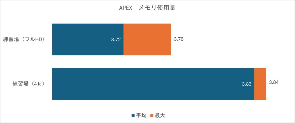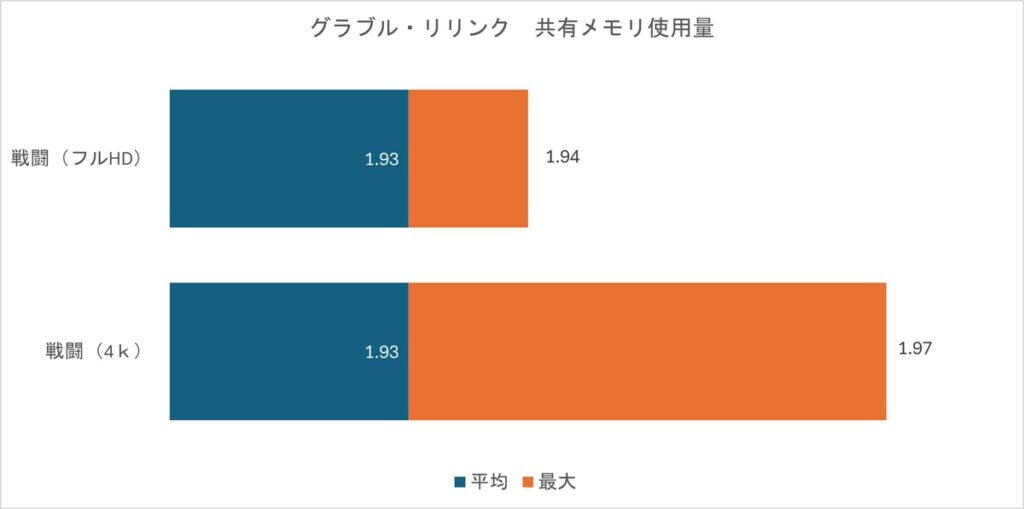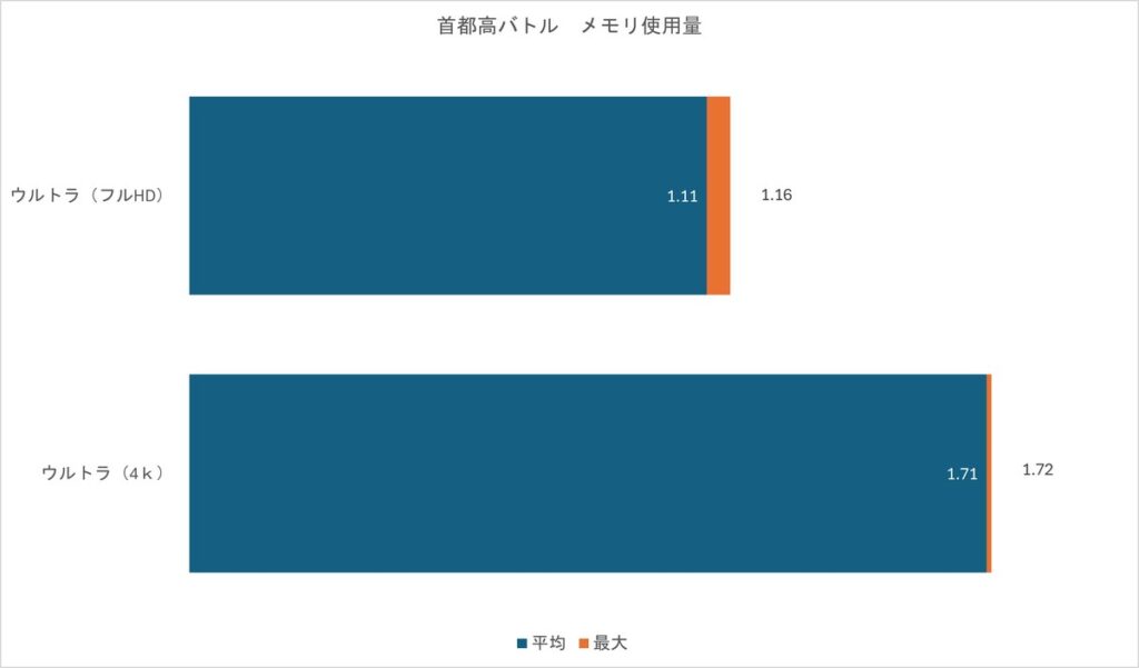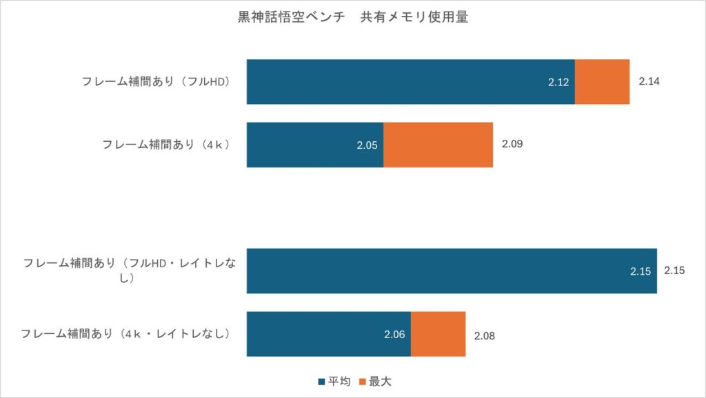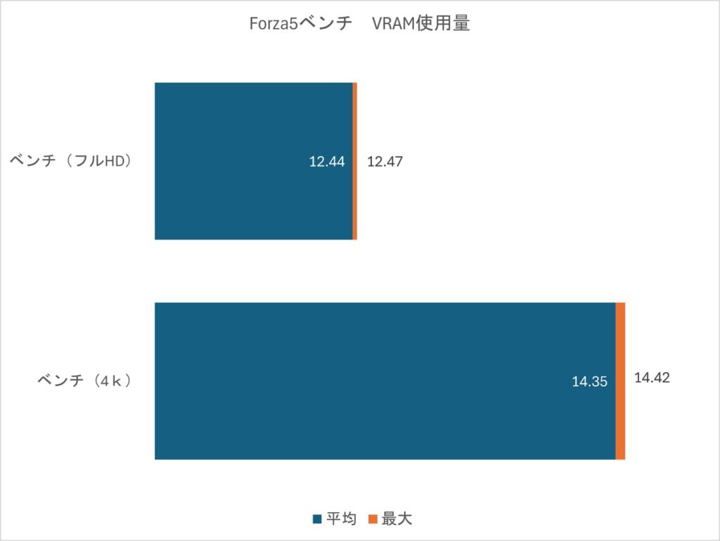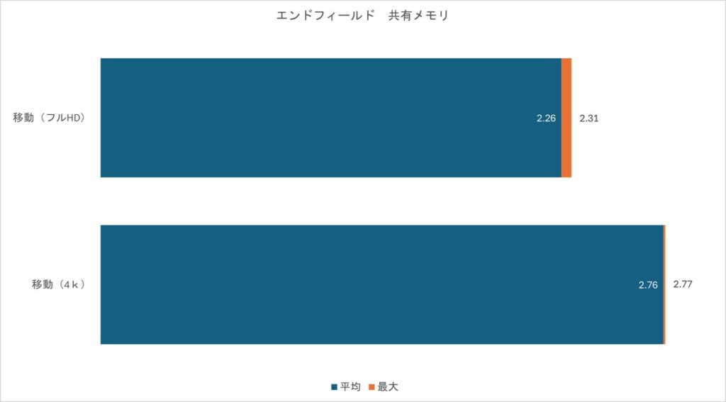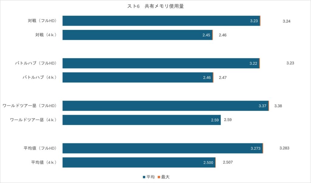 共有メモリはForzaと異なりフルHDでは10%ほどの減少となります。