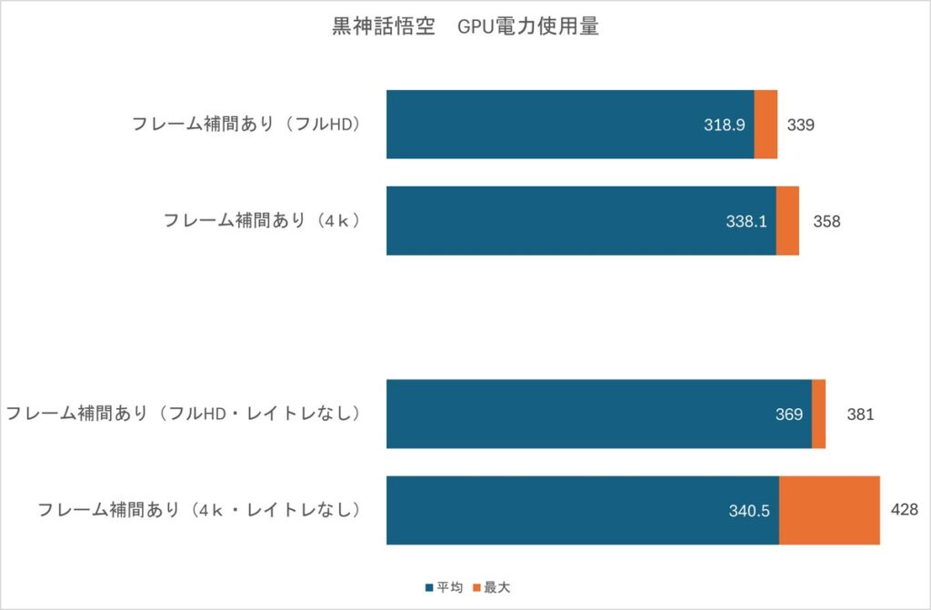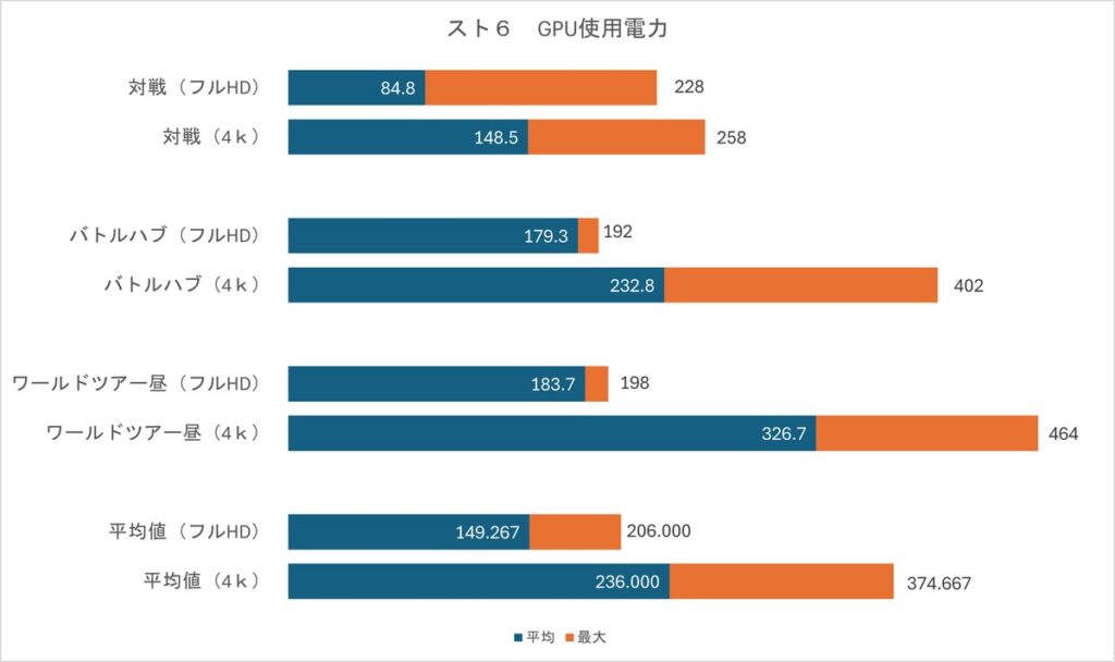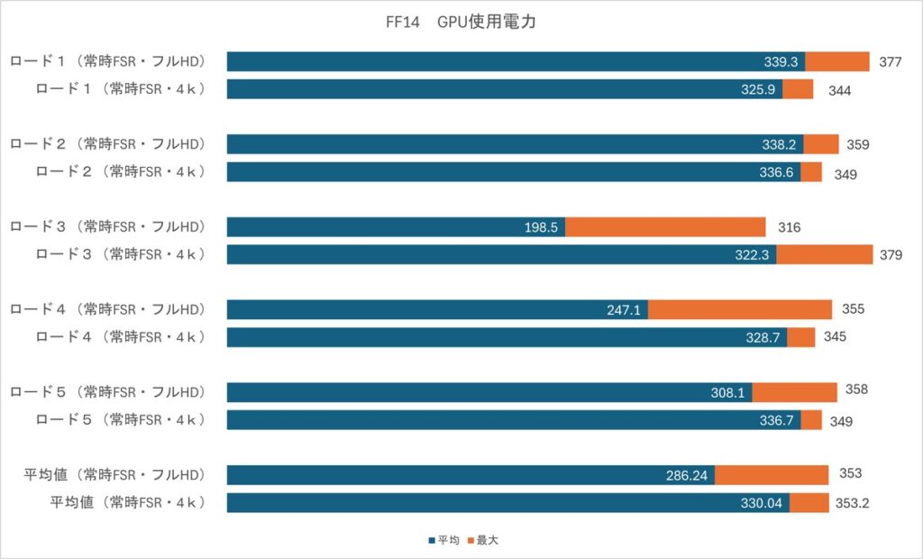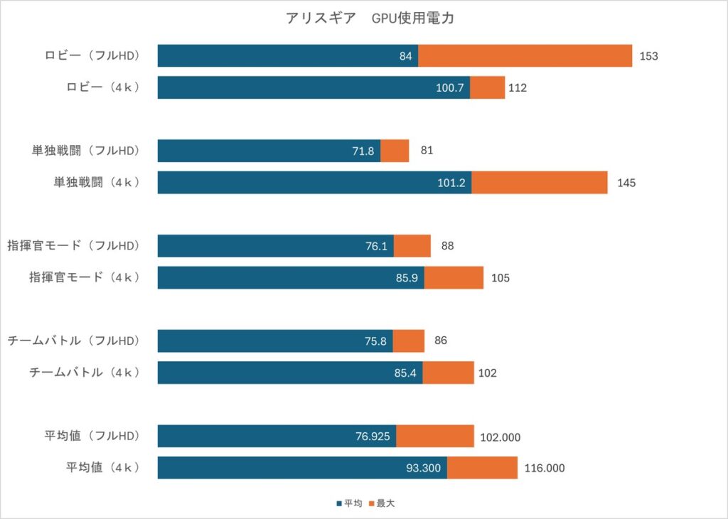 平均はともかく最大量電力消費量は解像度が変わってもほぼ変化無しです。