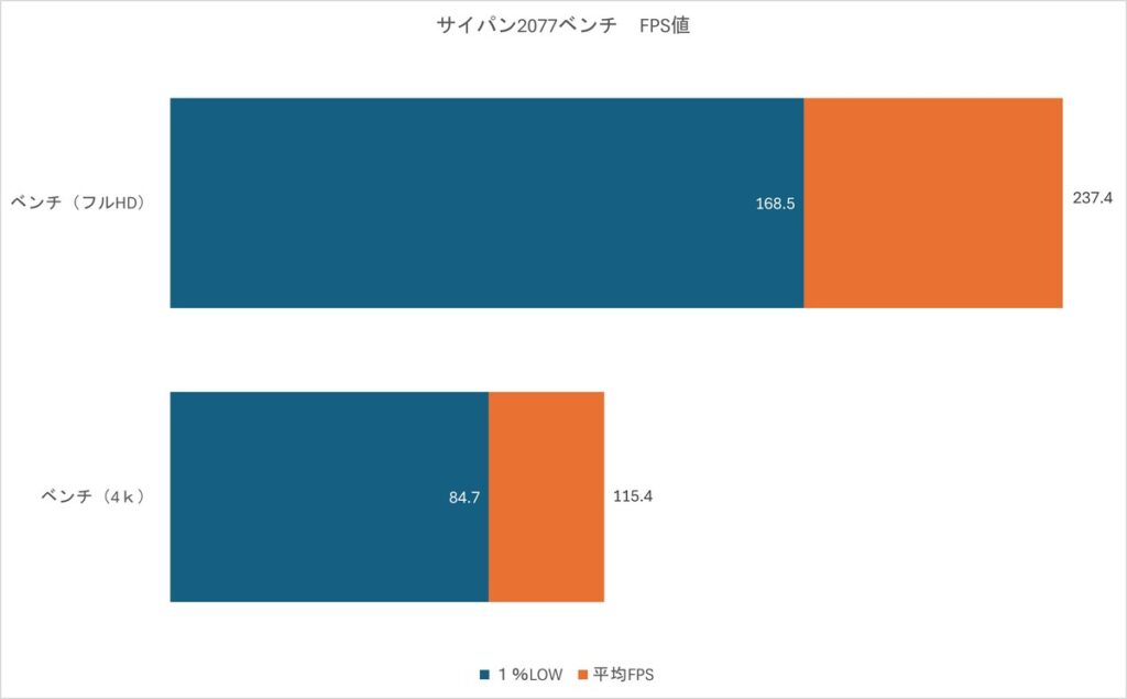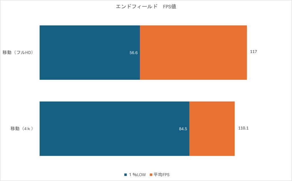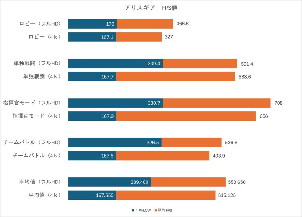 ただ最低FPSはそこまで極端に差が出てないのが面白いところです。
