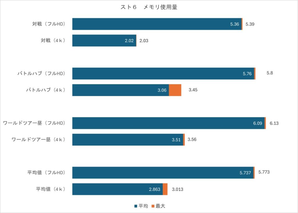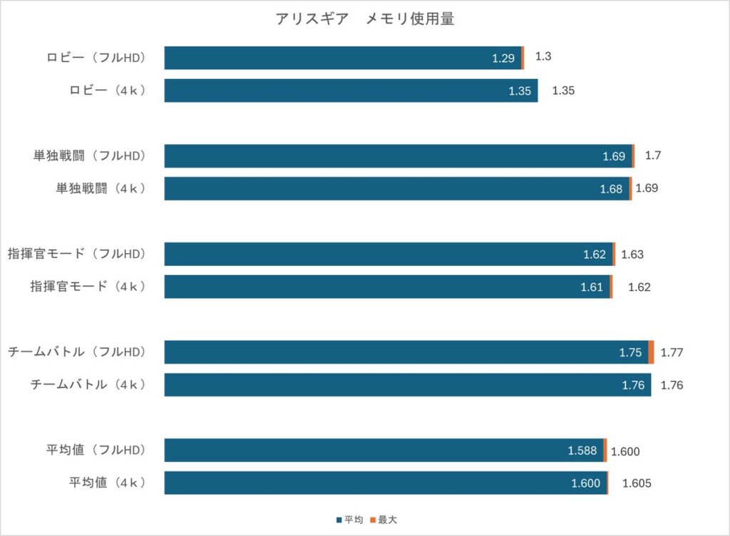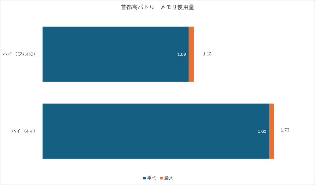 メモリは平均、最大ともに30%、フルHDにすると削減が可能になります。