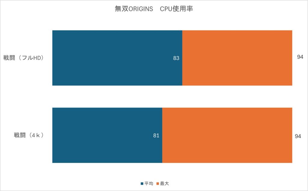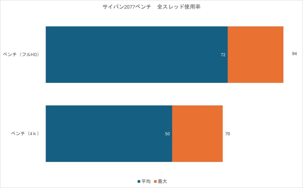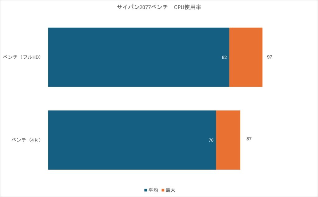 意外にもあれだけFPSぶん投げておきながらCPUはフルHDの方がゆとりがある形です。