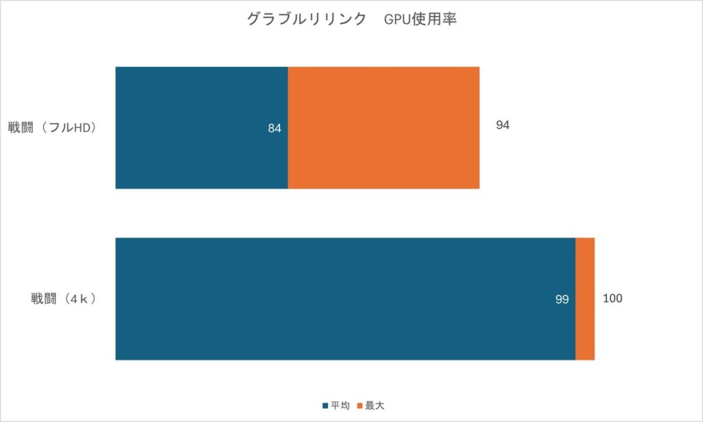 GPUはどちらも100%出しており、ここもボトルネック化しています。