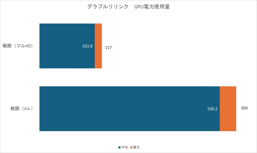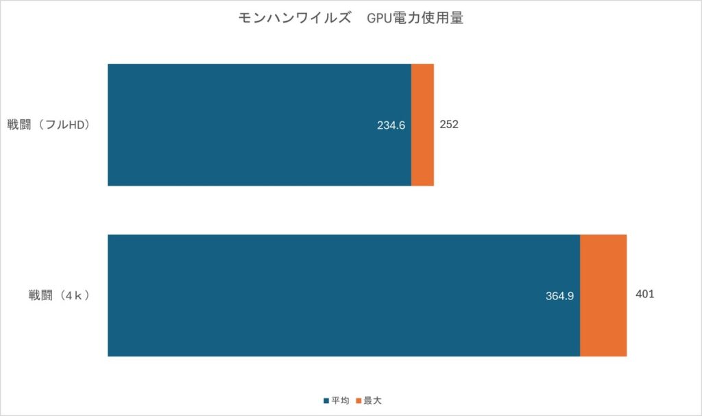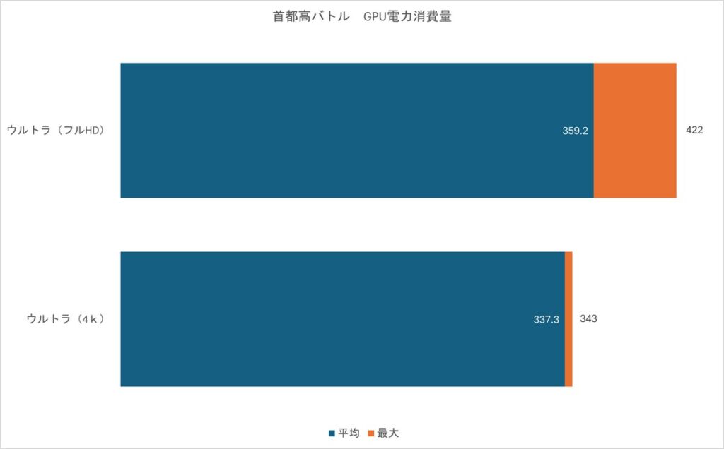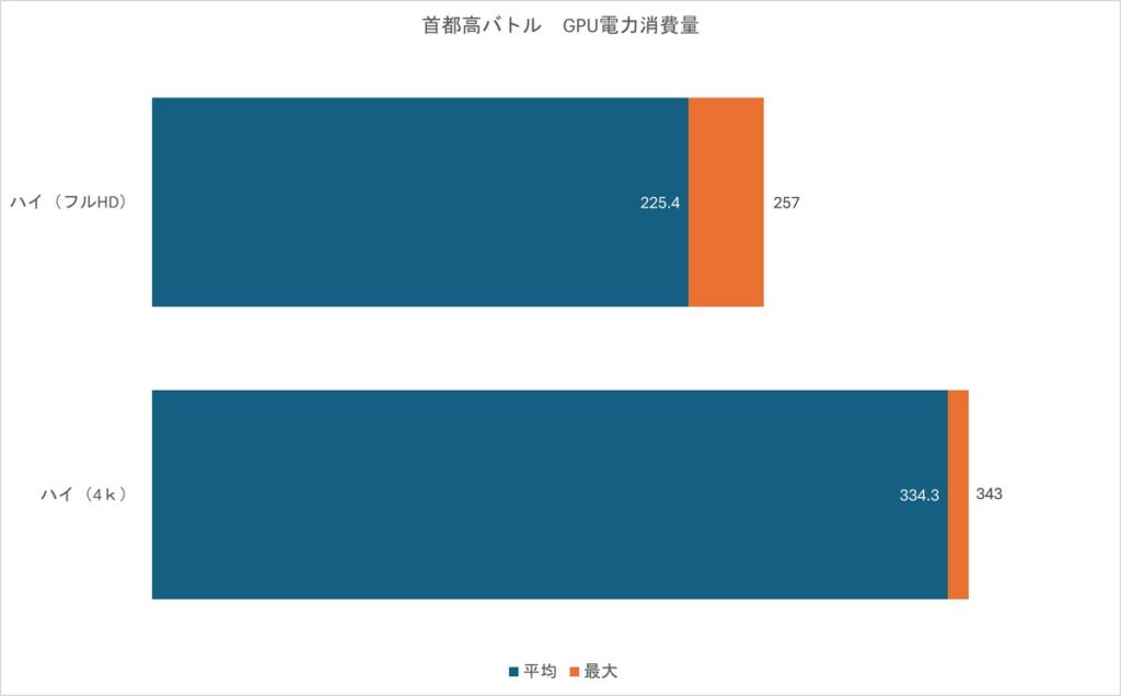 当然のごとくFPSが頭打ちになるため電力消費量はフルHDが圧倒的に優れている感じです。