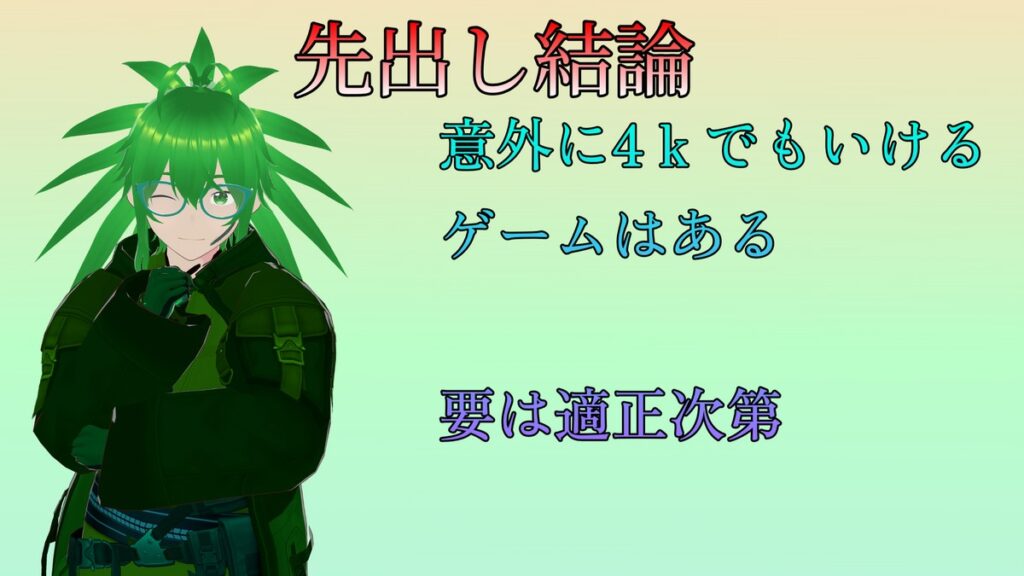 このことからこのゲームはFPSに最大値さえ求めなければ結構4kでも成立する感じです。