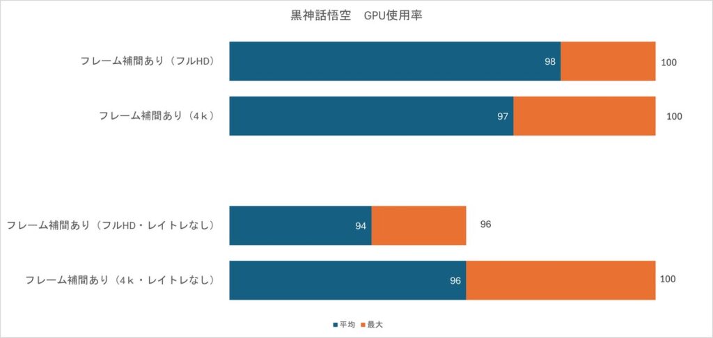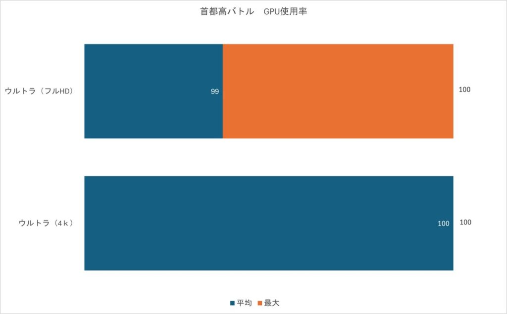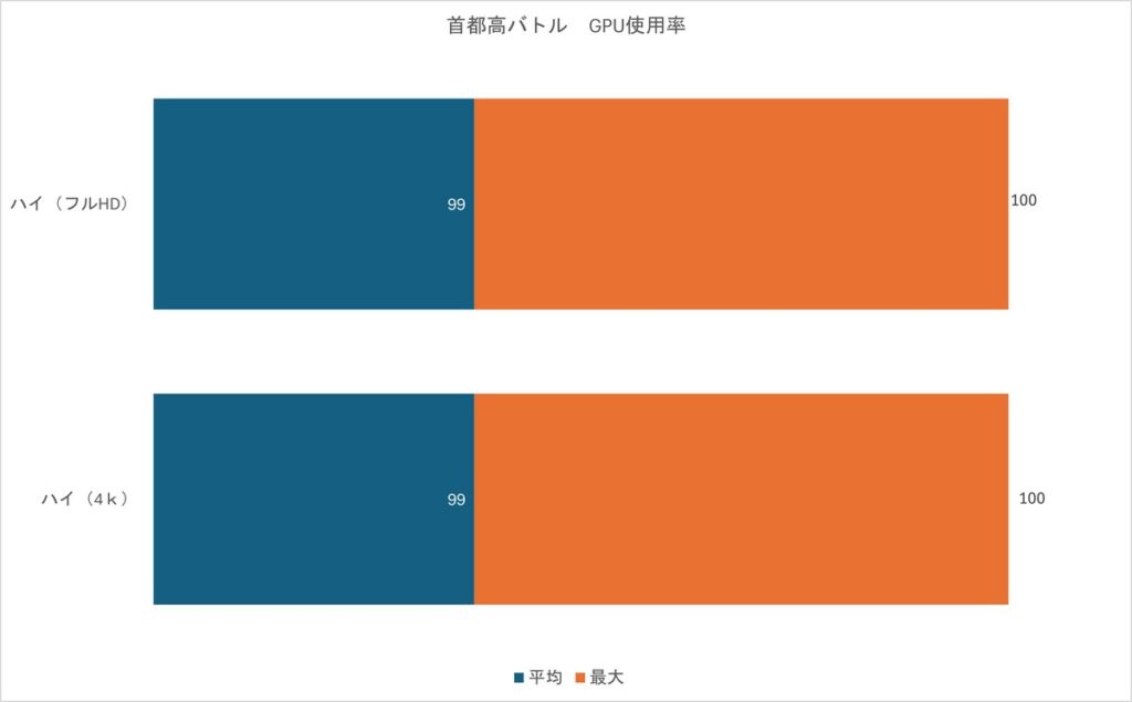 これもGPU使用率が高く、GPUボトルネックになっている感じですね。