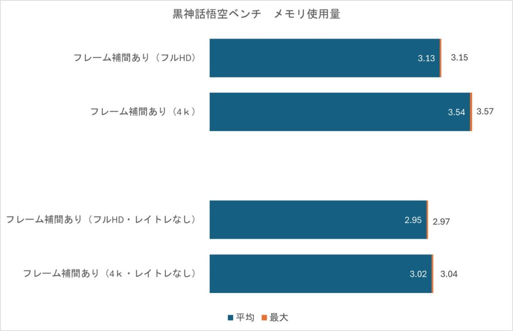 VRAMも平均で3GB以上減っており、かなりの削減になります。